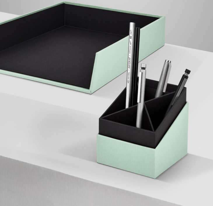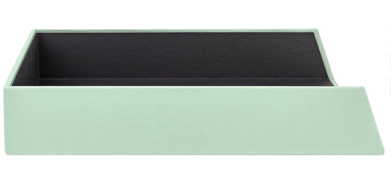 La vaschetta portadocumenti Menta per documenti A4 è ottimo per la tua scrivania o scaffale. La copertura Menta a coste gli conferisce un design speciale, di alta qualità ed elegante ed una sensazione eccezionale e lo rende anche molto resistente.