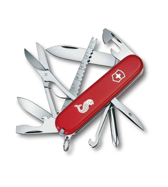 Quando senti pronunciare le parole Swiss Army Knife, è probabile che il tuo pensiero vada al leggendario Coltello per ufficiali. La leggenda continua con il multiuso Fisherman. È stato progettato e realizzato su misura per le necessità di un pescatore, quindi è naturale che includa uno squama pesci e uno slamatore. Tienilo nella tua scatola degli attrezzi e sarai sempre pronto per la prossima grande preda.