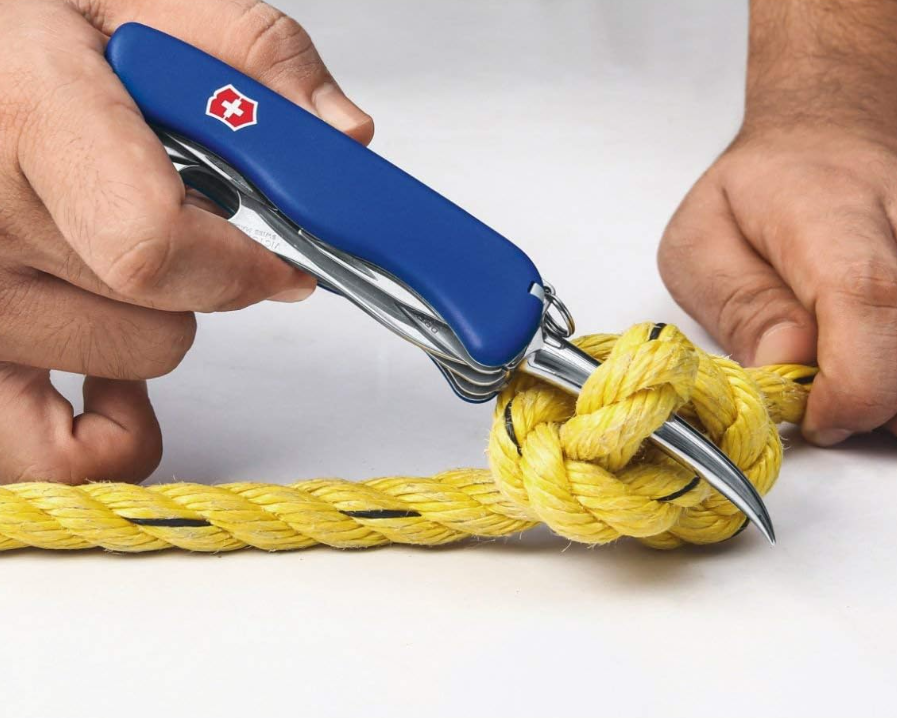 Per splendide, rilassanti e sorprendenti giornate in mare, serve uno strumento splendido, rilassante e sorprendente. È per questo che abbiamo sviluppato lo strumento compatto Skipper Pro, perché sia in grado di offrire le capacità di un intero equipaggio nel palmo della tua mano. È dotato delle tipiche funzioni Victorinox e combina una lama bloccabile con uno strumento specifico per la navigazione, indispensabile per ogni avventura nautica: un robusto sciogli nodi bloccabile. Abbiamo dotato il nostro modello di un laccetto arancione brillante che lo rende visibile anche in piena tempesta e ci siamo assicurati che abbia tutto ciò che ti serve per affrontare problemi di nodi e moschettoni ostinati.